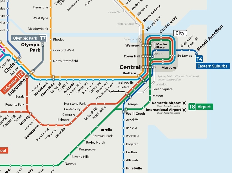 シドニーにはいわゆる地下鉄は無いが、この地下区間は本数も多く、実質地下鉄のような存在になっている。