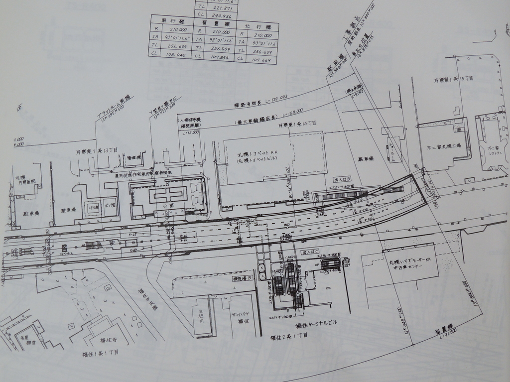 東豊線福住駅終端の平面図(札幌市高速鉄道東豊線工事記録より)。